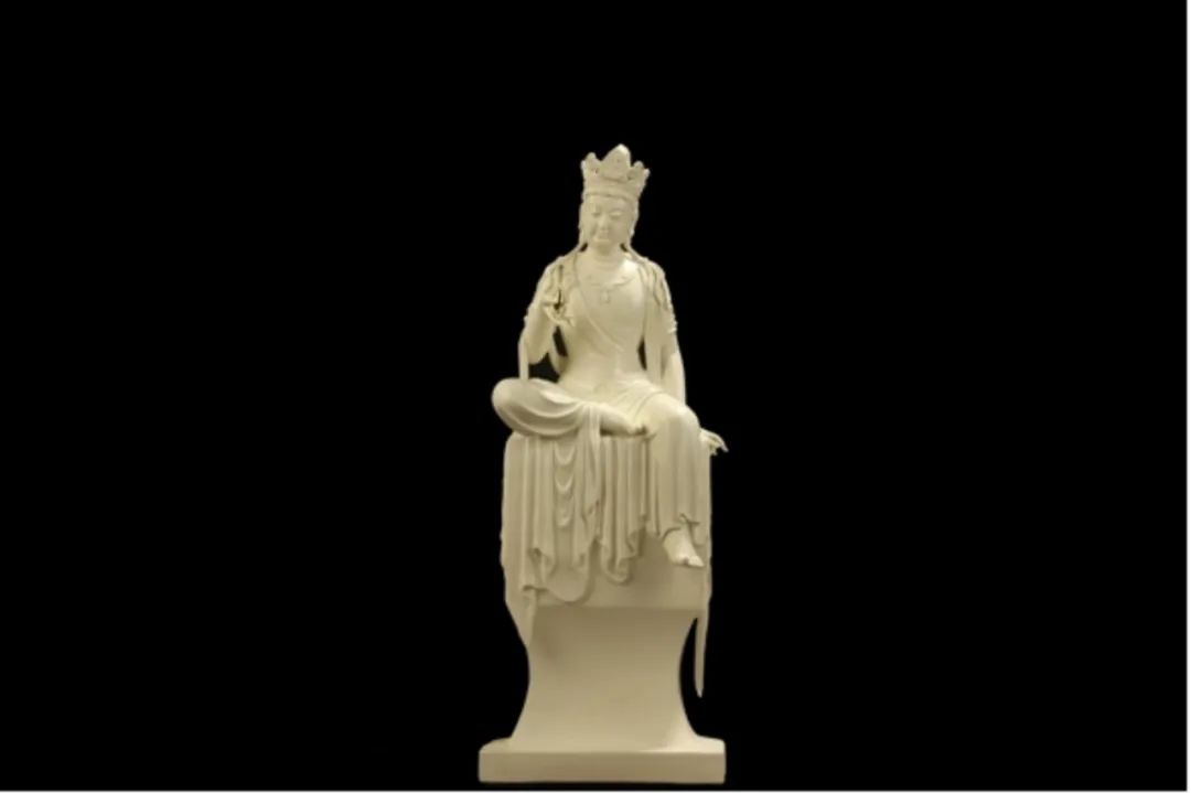 作品简介:从敦煌彩塑中寻找灵感,以线条柔美,体形饱满为重点着手创作,主体以脱胎工艺呈现。在传统雕刻技法之上,辅以现代树脂工艺,以传统题材为基础,以现代造型语言对衣褶进行概括,线条流畅、姿态舒展、比例和谐、技法精湛。