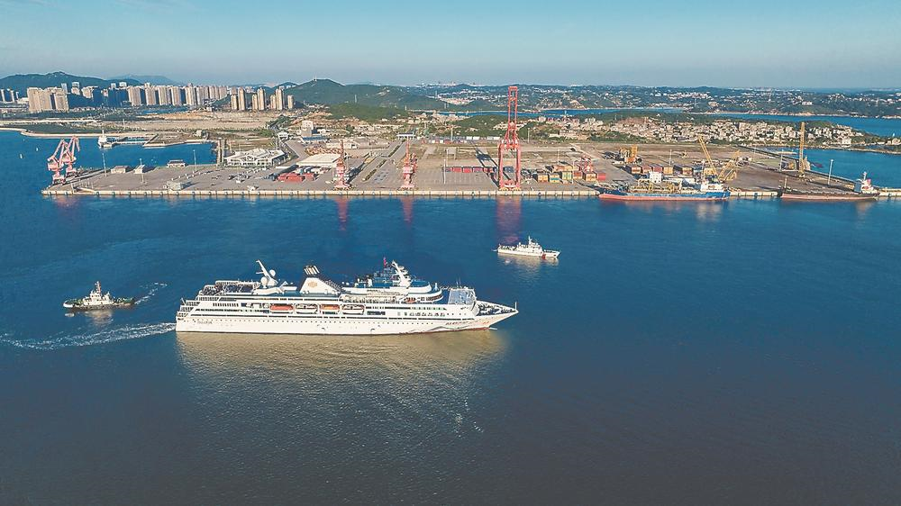 “蓝梦之星”邮轮在平潭金井港区国际邮轮码头启航。(资料图片)