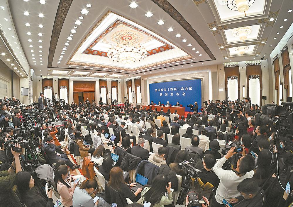 3日,全国政协十四届二次会议新闻发布会在北京人民大会堂举行。大会新闻发言人刘结一向中外媒体介绍本次大会有关情况并回答记者提问。