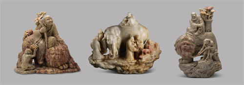 福州 陈为新《罗汉图》3件套(寿山石雕)
