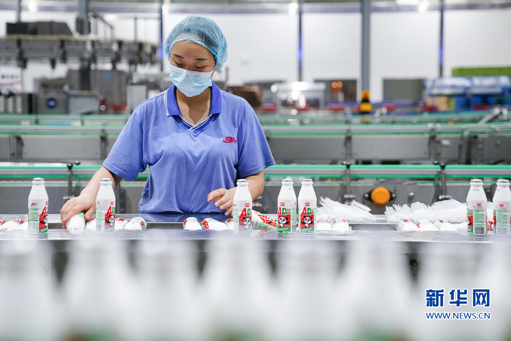 8月13日,福建盼盼饮料有限公司,一名女工在乳酸菌饮品生产线上工作。