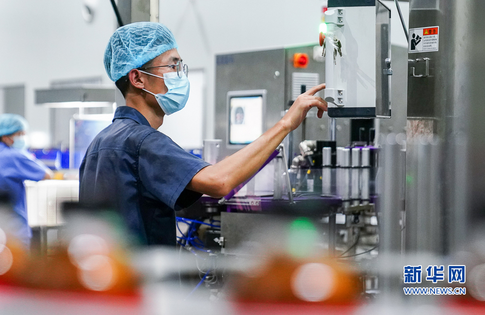 8月13日,福建盼盼饮料有限公司,技术人员在冷灌无菌生产线上调试设备。