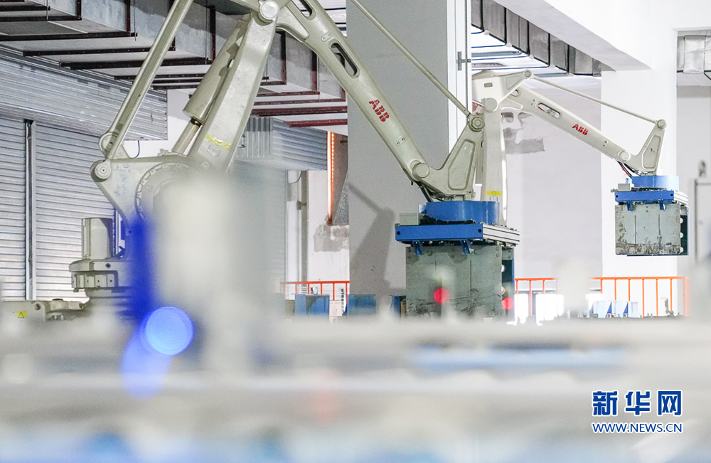 8月11日,恒安集团智能生产基地,机械手在码垛区转运产品。