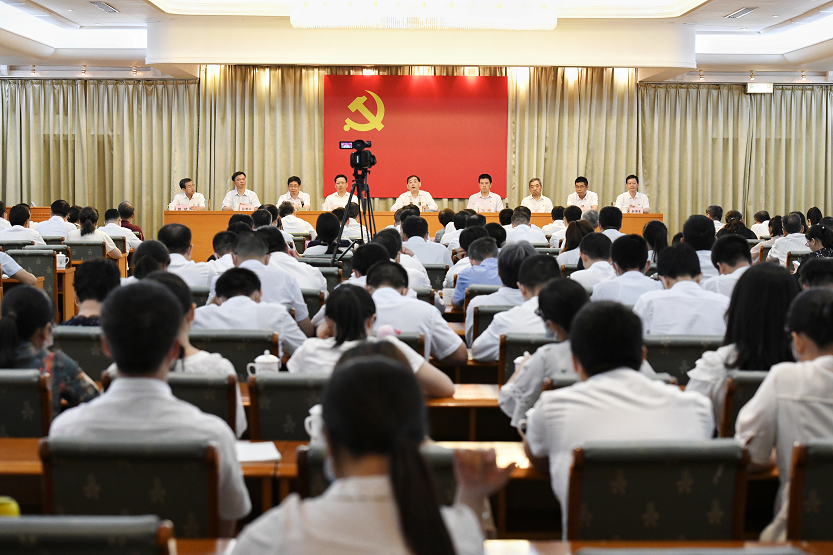 二要进一步强化担当作为,全方位推进高质量发展超越。用党在百年奋斗中形成的伟大精神滋养自己、激励自己,用革命加拼命的精神,以昂扬的精神状态,强化履职尽责,鼓足工作干劲。要立足新发展阶段,贯彻新发展理念,围绕制造业强省建设,聚焦“二产进”,优化提升产业结构,加快推动数字产业化、产业数字化,加大创新支持力度,激发创新创造活力,努力实现今年各项目标任务,为“十四五”开好局、起好步。