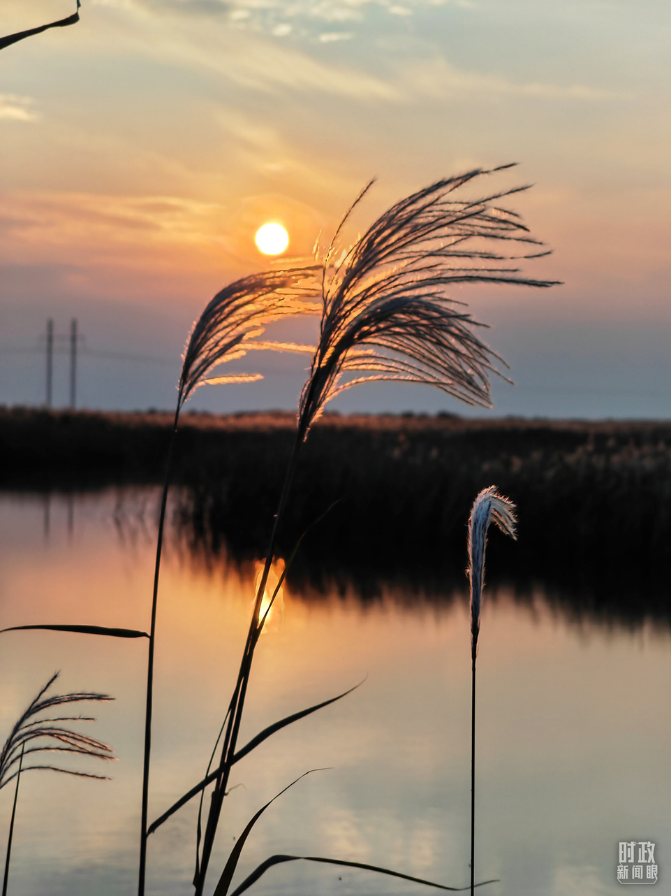 △2021年10月,习近平赴山东东营考察黄河入海口。黄河三角洲湿地,芦苇飘荡。