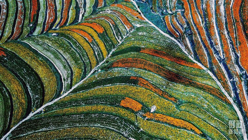 △宁夏彭阳县。万寿菊与格桑花盛开在错落的山间梯田上。